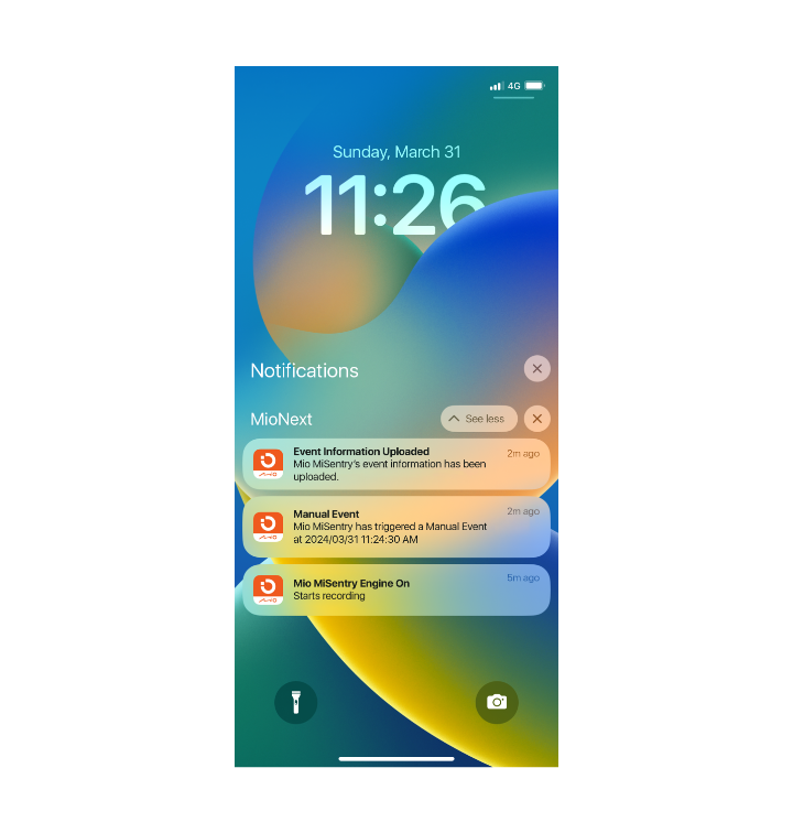 Imagine coming back to your car after shopping, only to discover unexpected damage to the front, and now you are wondering what happened. With MiSentry™ Smart Dash Cam bundled with a SIM card featuring 4G LTE connectivity, which eliminates the time gap of reviewing the recordings afterward, you're always in the know. Push notifications via the MioNext™ App alert you the moment an incident occurs, while event recording is instantly uploaded to the cloud so that you can access the footage on your phone.