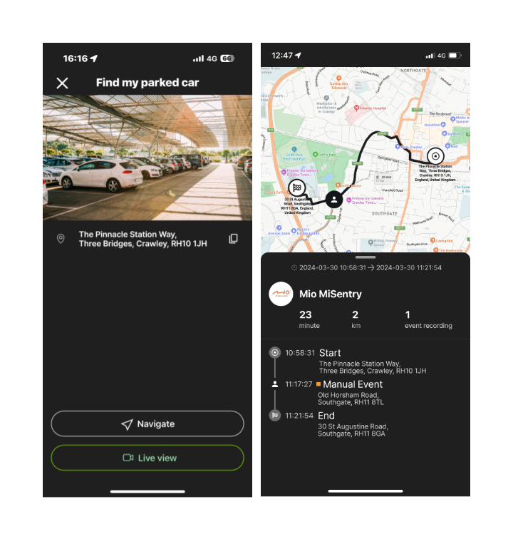 Effortlessly access the MioNext™ App for real-time GPS location tracking to find your parked car and review track records of daily travels including driving time, mileage, and event recordings during the journey.