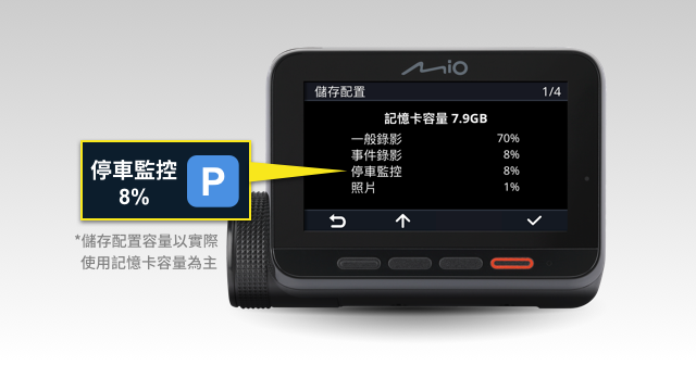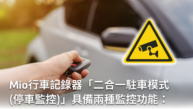 ※備註:需選購支援駐車模式之Mio行車記錄器,搭配安裝原廠MiVue™系列電力線(建議由相關專業技術人員施工安裝),方可選擇啟用功能。