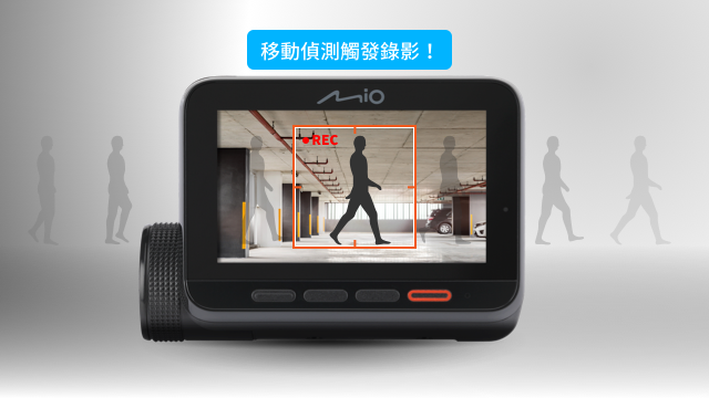 Mio移動偵測為全時監控不關機,透過運算技術,當偵測到主機鏡頭拍攝範圍內影像移動造成畫面變化時,就會自動觸發錄影寫入檔案。